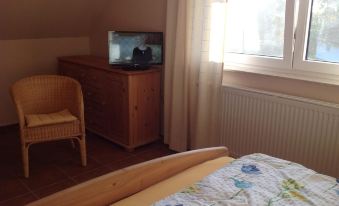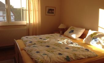 Our semi-detached house is 110 sqm very spacious, modern furnished and offers on the upper floor with 2 bedrooms (1 double bed each) and 1 bedroom (1 day bed) for 6 people. In addition we offer 1 cot. The in-house sauna (for a fee) and the idyllic, quiet location invites you to relax and unwind. The house is fully equipped with insect screens.