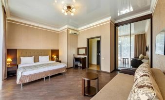 The hotel offers accommodation in 27 rooms from Standard to Suite. Each room is equipped with air conditioning, a TV, a comfortable workplace, a refrigerator and a private bathroom with toiletries. The rooms have a balcony with panoramic windows overlooking the mountains.