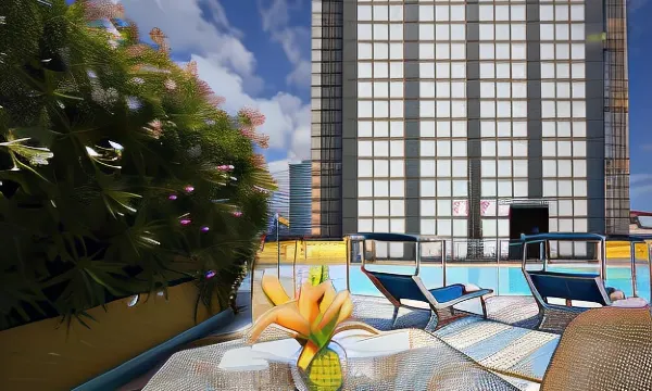 الترفيه: مسبح، منطقة للتشمّس، و غرفة لياقة