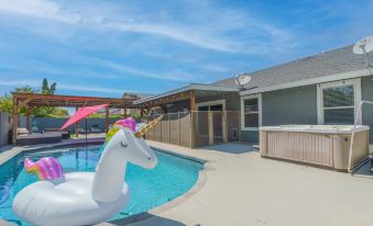 **private pool not heated** Welcome to your tranquil desert oasis in Glendale, Arizona! This elegant 4-bedroom, 2-bathroom, single-story home offers the perfect blend of comfort and luxury. Whether you’re relaxing by the private pool, soaking in the hot tub, or enjoying a game of pool in the garage, this home has everything you need for a memorable stay. With spacious living areas, a fully equipped kitchen, and king beds in every bedroom, this property is ideal for families, groups, or anyone looking for a peaceful retreat