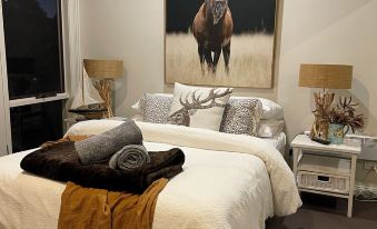 5 غرف نوم: 2 سريران فرديان و 4 أسرّة متوسطة