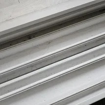 الشعر والغبار وما إلى ذلك على إطار نافذة الشرفة وما إلى ذلك.