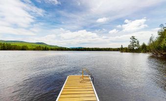 Private dock on shallow pond for small fishing boats, free public boat launch less than one mile away, Beaver Cove Marina across the street for launching boats on Moosehead Lake