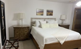 Featuring two bedroom condo; Master bedroom with a king size bed and TV.