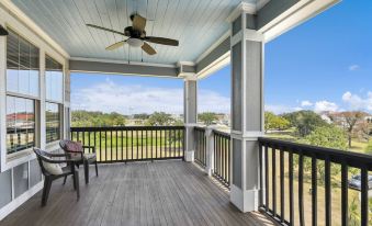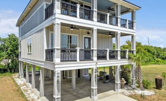 Enjoy easy access to everything in this NOLA style 4 bed / 4 bath just 2 blocks to the beach on a quiet cul-de-sac w/ parking for up to 5 vehicles. Each bedroom has an en-suite bathrooms, tv, and walk in closet! Centennial Plaza just east of the property has a restaurant and Wine Bar. Work space in laundry area with a tv you can usb connect to your computer for dual monitors or a quiet space to work. 2 large porches for enjoying coastal breezes…80’s style game room! Perfect place to unwind!