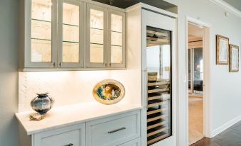 Our nightly rate may be higher than other rentals on the coast, for this reason. We welcome guests who will treat our home as their own. Sienna on the Coast is a beautiful 82 unit complex that is located halfway between Gulfport and Biloxi. Fall in love with beachfront living from the moment you walk in to the lobby. An indoor heated pool, Jacuzzi, small fitness facility and steam room are located on the ground level. Just outside of the complex you will find an infinity pool with a gradual slope, perfect for the little ones in your party. A putting green is adjacent. Let the memories begin as you enter your 'home away from home' Large windows across the end of the living room and master provide you views of the Gulf from the moment that you walk in. The setting of this condo is unique in that it not only has windows across the front but to the west side as well. Can there be anything better than sunsets over Gulfport as you have your evening meal around the dining table with seating for six? Additional seating for four is at the bar. Retreat to the beautiful master suite that hosts a king size bed with pillow top mattress. Enjoy a completely renovated master bath (October 2019) that has quartzite counter tops, custom cabinets, walk in shower with bench and a soaking tub. The second bedroom hosts a queen size bed and has an adjacent full size bath that has been renovated. The third bedroom also hosts a queen size bed. A full bath is attached that has been renovated. Our kitchen was fully renovated in October of 2020. Preparing your meals in our custom kitchen will be a treat with sub zero refrigerator and Wolf cook top, microwave and oven. Our wet bar has a full size Sub Zero wine refrigerator with beverage drawer and ice maker. Quartzite countertops, and custom cabinetry complete the kitchen. All linens and towels are provided. The condo also has a separate laundry room with a full size washer and dryer. The balcony will provide you with the best views along the coast. There is group entertainment seating for eight. Your balcony is private.