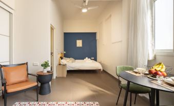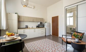 Welcome to our modern and bright studio apartment, offering a spacious retreat with a serene courtyard view. Thoughtfully designed for functionality and comfort, this space provides a simple yet inviting atmosphere.
