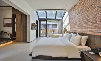 My favorite hotel so far after 12 years in China, we were lucky to find it close to the river park where we planned to take our dog for a swim. Firstly the staff was super polite & friendly, they helped with the luggage and even brought some pet supplies when they saw our dog. The hotel location is quiet and peaceful, super clean and the bed sheets were clean and washed properly unlike many other hotels. There is a parking area if you’re coming by car, and the small town nearby has a few chargers. Breakfast was fresh, room even had a fridge and a Nespresso machine, everything in the room was digitally operated by voice. Toiletries were available, towels and hot water no problem. Staff made a wechat group for our family as soon as we booked online and been always asking and offering help. Really recommend this lovely retreat for anyone looking for some peace in the mountains. Thank you 1977 hotel, we will definitely come regularly.