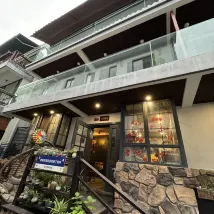 Очень уютный красивый район. Отель нормальный. Но мансарда низкая тесно. Но комфортно. Рядом сады очень красивый район. Удобно добираться.
