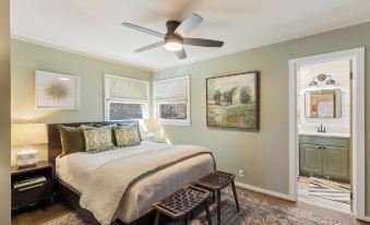 Dogwood Cottage boasts one level living with step less back entry, two master suites, each with ensuite bathrooms and luxurious bedding. The kitchen is fully stocked and features quartz counter tops with custom cabinetry, opening to the beautiful living room with gas stone fireplace, 55" TV and lovely dining table seating 4-6. Dogwood Cottage will entice you with its elegant interiors and peaceful outdoor living spaces.