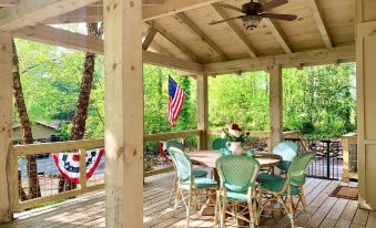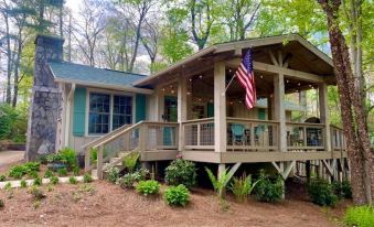 Dogwood Cottage is the perfect balance of serenity and proximity to town. Enjoy shopping and world class dining just minutes away or simply relax on the covered porches with a book and glass of wine. The well-appointed kitchen and gas grill provide an excellent combination for a night of entertaining family and friends. Take delight in a beautiful sunrise over Satulah Mountain from the front porch or unwind after a full day of activities on the private, covered back porch with wood burning stack stone fireplace and 60" flat screen TV.