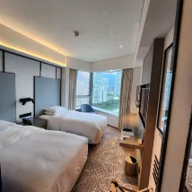 High level of comfort and utility, very spacious room, sometimes with a nice view. The hotel shares the building with its 5-star brother, so the infrustructure of the both hotels is at your disposal, and the diversity and qualty range of the dining options is really impressive.