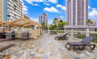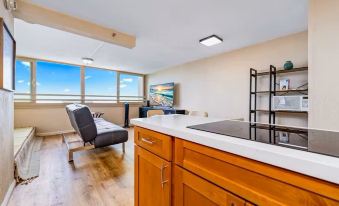 Start your day with coffee on your private balcony as Waikiki wakes up, or unwind with a sunset happy hour drink. Packed with deluxe amenities, there's endless fun at your fingertips. The fully equipped kitchen, including a dishwasher, makes meal prep a breeze. After a day of adventure, relax with your favorite shows on TV or explore Waikiki’s vibrant nightlife.