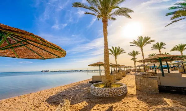 يقع منتجع العطلات Golden Beach Resort الشامل كلياً على بعد حوالي 15 كم من شمال غرب مدينة الغردقة، ويوفر شاطئ رملي خاص على طول البحر الأحمر، كما يوفر 7 مطاعم و8 بارات.