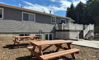 Large front of the house makes parking for the whole family super easy. The backyard includes a raised deck including a BBQ grill, a Fire Pit for roasting marshmallows and watching the stars, and a patio area for dinners or games outside. Inside the house you have access to the upper portion of the home.
