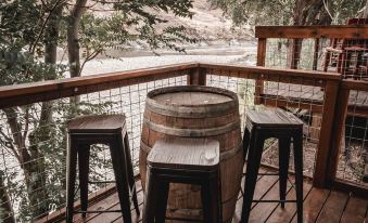 Very nice place, had a great time. Going out to the back deck perfect, river rushing, we saw boats and kayak. Only thing, hard to get to the beach area , the rafting guides let us come over to their area and use the stairs. If you are older like me it's hard to get down there. Saving this for another trip for sure.