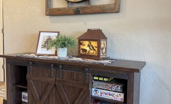 • The Maverick Suite – Our spacious primary suite with a king bed, a crib for little ones, and a mix of rustic romance and western luxury.