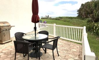 Direct ocean end unit townhouse located 20 steps to the best Space Coast beaches. Beautiful clean quiet beaches with lots of area for lounging and playtime. Three blocks to river for beautiful sunsets!