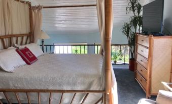 First floor master suite with queen bed and ensuite bathroom. Loft style 2nd floor king bedroom with bathroom down hall. 3 TV's, internet and cable.