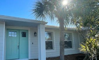 Everything you need in this comfortable 4 bedroom, 2 bath coastal beachside house only 0.4 mile from the beach! Enjoy the heated saltwater pool, covered outdoor patio, propane fire pit table, and grill. The house has great open spaces, and the kitchen is fully stocked. There is also everything you need for a great time at the beach.