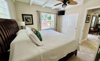 When you walk in the front door of this little villa, you are immediately drawn to the wide back doors and the beautiful water view beyond. This is where we spent most of our time, on the back patio, which belongs just to this villa, and the waterfront patio, which is a shared space for all the villas. The location of Bayview Villa was perfect for us as we could walk to many of the nice restaurants that have waterfront dining. The Publix is very close and there's also a walkable CVS. The space was very clean and was set up well for the four adults that visited.