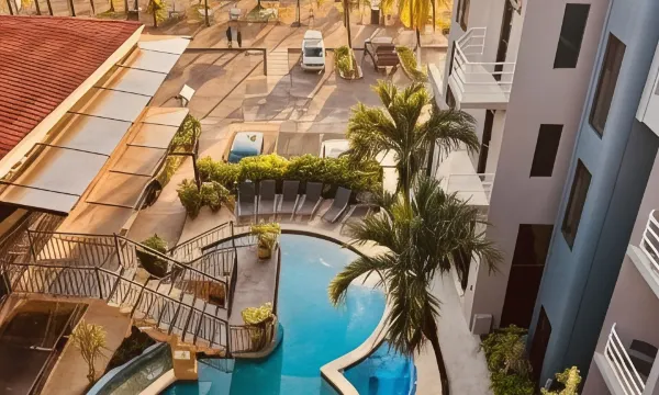 The hotel name was not accurate upon arrival, and the builiding was gray instead of orange in the photos, but this is a great place to stay in Jaco! Has 2 pools, but the hottubs are same temp as pools. On the beach.