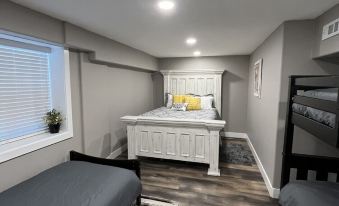 The house was good. There were 3 bedrooms upstairs, 2 bedrooms downstairs. Also downstairs there were 2 other rooms (kitchen & family room) where people could sleep on sofas or mattress cots. There was another bonus room with a big TV that worked great for gatherings, but didn't make a great place for sleeping. There was a big yard and plenty for kids to do and it's really close to all the things to do in Eastern Idaho. The hosts were great to respond to minor issues like the microwave being out and bringing over a new one the next day.