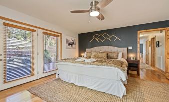 The Primary King Bedroom boasts majestic views of the waterfalls, and also has direct access to the hot tub deck. Relax and enjoy the large SmartTV at the end of your day.