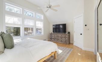 The Bunkhouse has been newly remodeled in 2022 with 2 Twin Beds and one pullout sleeper. Completely updated/modern bathroom with Sonos, and a Frame TV. Perfect for teens or adults.