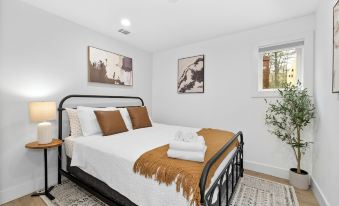 perfect for enjoying a quiet moment or a meal outdoors. As night falls, gather around the brand-new fire pit in the shared outdoor area, a cozy spot perfect for relaxation under the stars. The suite features a modern, fully-tiled bathroom with quartz countertops, providing you with a luxurious touch of privacy. The kitchenette is fully equipped for your needs, featuring a small fridge, small toaster oven, and beautiful quartz countertops. A portable stove is also available for cooking, and we offer complimentary coffee and tea for a delicious breakfast. For your entertainment, the 55-inch TV comes with access to Netflix and Disney+, ensuring you're set for relaxing evenings indoors. Need a little extra space for your little one? A portable crib is available upon request. Games & toys are provided! While there is another shortterm rental above, rest assured, our soundproof doors ensure your privacy and comfort during your stay.