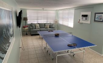 2 bedroom, 2 bathroom large house with game room, tall ceilings, lots of entertaining space and great dock. Comfy couch, porch chairs, outside furniture, and new beds! Bring just the two of you or bring the family and have a great space to hang out together or separately! Game room has a pull out couch and ping pong to keeps the kids or adults entertained. TV’s and fast internet in every room, living room has an 86” tv with Roku and Apple TV for movie night, or just go enjoy the back area and listen to the water or look for the resident manatee! Awesome dock for boating with a fish table, hose, and electric. Nice and deep! Around the corner is right out to the ocean. There is a large seating area underneath in the shade or Adirondack chairs to sit around and talk about the fish that got away… the living room is perfect for movie night and the porch is the perfect spot for your coffee in the morning or favorite drink at night! And the kitchen is large for those that like to cook!