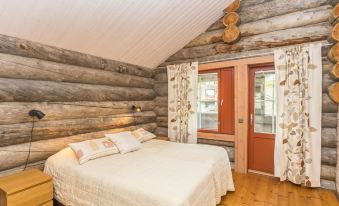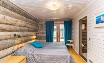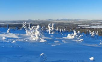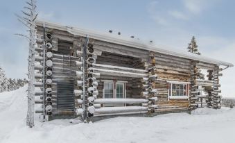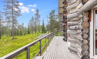 This spacious and stylish log villa, built in 2008, is beautifully located on the Utsuvaara fell in Levi. The well-equipped and spacious kitchen provides excellent facilities for cooking. The living area has a television and a cozy fireplace, creating a comfortable atmosphere. The villa has three bedrooms. One is on the ground floor, equipped with two 80 cm wide beds, its own shower and WC, and a small private terrace. On the upper floor, there are two bedrooms, each with two 80 cm wide beds. Additionally, there are two fold-out mattresses upstairs that serve as extra beds and also a separate WC and shower. Both bedrooms have access to the balcony. The villa also includes a bathroom and sauna area, and there is a second WC on the ground floor. Both the kitchen and the dressing room on the ground floor provide access to the large terrace, which offers stunning views to the surrounding nature.