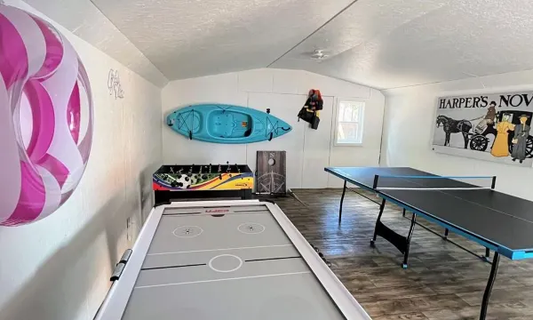 - Game room: Located in the large storage shed, features Ping Pong, Air Hockey, Foosball, and Cornhole games. Enjoy some friendly competition!