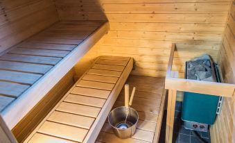 In this semi-detached apartment you have downstairs a living room/kitchen, a bedroom with double bed, a washroom, a separate toilet, sauna (electric stove), a hall and a terrace. The loft has a bedroom with 2 beds and 2 extra beds in the lobby lof the loft. Wifi, Air source heat pump for additional heating and cooling.