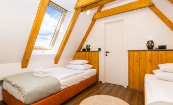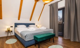 Kupjak 10 km from Delnice: Beautiful single-family house "Vuk", 2 storeys, built in 2024. 6 km from the centre of Skrad, 57 km from the centre of Crikvenica, 58 km from the centre of Rijeka, in an elevated position, 50 km from the sea, 50 km from the beach. For shared use: barbecue. Private: property 550 m2. In the house: internet access, sauna, hot tub (all included), relaxation room, billiard table, playroom, table football, central heating system, air conditioning, washing machine, tumble dryer. Parking (for 2 cars) at the house on the premises. Shop 6 km, supermarket 10 km, restaurant 7 km, bus stop 6.7 km. Walking paths from the house 100 m, sled run 300 m. Nearby attractions: adrenalin park Kupjak 1 km, Zeleni vir nature park 7 km, Muževa hiža cave 7 km, Risnjak national park 22 km. Well-known lakes can easily be reached: Lokvarsko jezero 18 km. Please note: car recommended. Groups of teenagers on request only. Additional accommodations can be booked. Property ref. HR2950.103.1 is situated on the same property. 5-room house 240 m2 on 2 levels. Modern and stylish furnishings: living/dining room with 1 sofabed, satellite TV and air conditioning. Open kitchen (oven, dishwasher, 4 induction hot plates, toaster, kettle, microwave, freezer, electric coffee machine). Sep. WC. On the lower ground floor: playroom with separate WC and air conditioning. Open kitchen (2 induction hot plates, microwave, freezer). Upper floor: 2 rooms, each room with 2 double beds (180 cm, length 210 cm), air conditioning. 1 room with 2 beds (100 cm, length 210 cm), shower/WC and air conditioning. Shower/bidet/WC. Heating. Balcony 6 m2, 2 terraces 10 m2. Terrace furniture, barbecue, deck chairs. Beautiful view of the mountains. Facilities: washing machine, dryer, safe, iron, hair dryer, logs (free). Internet (WiFi, free). Parking (2 cars). Please note: non-smoking house.