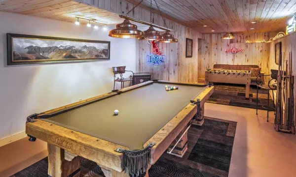 Game room w/ pool table, foosball