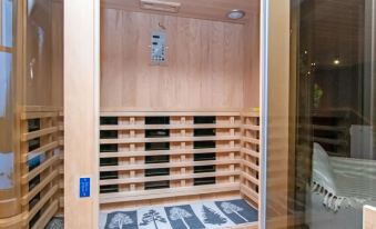 The lakeside sauna has both a wood-burning and an electric sauna stove, a dressing room, and a cozy living area. Washing water is heated in a stove tank, and the sauna has electricity and summer water pumped from the lake. The lakeside sauna is available from May 1st to October 31st.