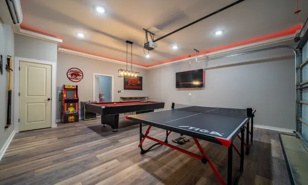 “Long Beach Seventeen” is a beautiful, newly built, lakefront home that sleeps 12 and features a game room and kayaks. With space for the whole family, this 4-bedroom, 2.5-bathroom vacation rental features direct water access and 2 covered decks, as well as must-have amenities like Smart TVs, free WiFi, and a fully equipped kitchen. Your guests will enjoy kayaking the cove or playing in our game room complete with pool table, ping pong, LED color-changing lighting, and a 65” Roku TV.
