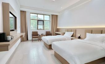 去的時候剛好趕上這個村BA,哎呀,還是蠻熱鬧的嘞,這個縣城還是蠻美的,住在房間裏就可以看到這個河景,房間呢,應該是一個辦公樓改造的房間呢,還比較大,裝修的非常的新,就是要多通通風就好了。綜合對齊非常不錯,很值得推薦,而且它的停車場也蠻大的,在一個坡上,水平要好的才可以開上去。