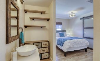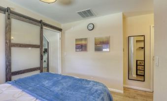 When you reserve Desert Song Casita, you'll enjoy 499 square feet of your very own free standing, private refuge in Northwest Las Vegas, featuring one Queen sized bed with supportive mattress and crisp cotton sheets, ample bedroom closet, one bathroom with shower, fully stocked petite kitchen with apartment sized refrigerator/freezer & range plus micro wave oven & bistro dining set, perfect for creating simple meals or enjoying takeout. There is a comfy tv area, desk area and sitting area for two to enjoy wifi and streaming TV with hulu and sports channels. Desert Song Casita has central air and heat, a laundry area with electric washer and dryer, one covered parking area for one vehicle only, just steps from the front door. Cannot accommodate oversize vehicles. No pool access. Smoke free from vape, cannabis & cigarettes or cigars, one pet under 40 pounds okay with $49 pet fee. 7 day minimum stay only. Two guests maximum, can accommodate two adults or one adult with one child. Key less entry. 3p check in, 11a check out.About pets:Pets allowed: dogs and cats less than 50 lbs per pet (limit one pet total).About checkOut:Check out before 11:00 AM.About children:Children allowed: ages 0-17.One adult plus one child maximum..About checkIn:Check in after 3:00 PM.About smoking:Smoking is not permitted.About minBookingAge:Minimum age to rent: 18.About events:No events allowed.