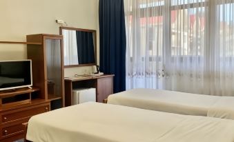 Не смотря на сложности с подтверждением брони отель понравился:чисто, высокие потолки, недавний ремонт, сантехника и кондиционер работают идеально, есть даже климат-контроль, тихо. Пляж хороший, однако в номере кроме чайника ничего нет, завтрак 1000 р..