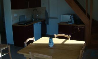 New gite built in framework with ecological insulators; bales of straw, hemp wood panels, interior renderings of earth and plaster, production of solar hot water. Natural area reserved for the gite, parking space for several cars.