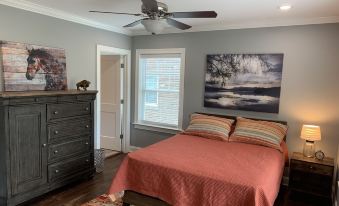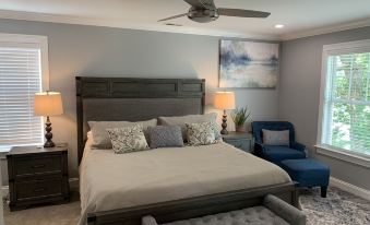 You'll enjoy 5 large bedrooms (1 King, 5 Queens), an open and inviting living area, a charming finished basement (sofa bed) and 4 full baths. High speed internet and a new large capacity washer/dyer will make you feel at home.