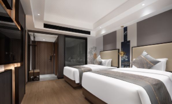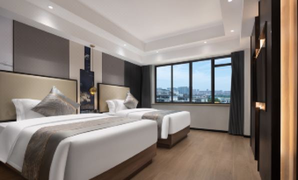 離一江兩岸近,前台小姐姐很隨和,房間很大,兩張135的床,一家四口勉強能睡下,若是房間能有一張小沙發或是加一套茶几兩把椅子,就好了,牆邊的桌子椅子放了幾樣東西,都沒地方坐了。希望能準備兩雙一次性拖鞋。