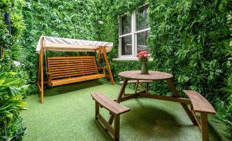 تتوفر (1) غرفة نوم في بيت العطلات، و (1) حمّام، وبياضات أسرّة، ومناشف، وتلفزيون بشاشة مسطحة مع قنوات فضائية، ومنطقة لتناول الطعام، ومطبخ مجهز بالكامل، وفناء مع إطلالات على الحديقة.