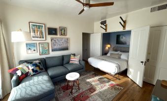 This quaint studio will be your new home away from home. It features a pull down Murphy bed, comfortable sofa, 50" smart TV and original design elements from the 1930s. Two bicycles and two beach chairs are available for use in the garage. Free parking is available 24/7 in the brick alcove directly in front of the studio. The location is very convenient for overnight guests who want to stay at the beach yet need quick access to LAX. Please note that it is located on a busy street, so there is some ambient traffic noise. A 14% transient occupancy tax is payable to the City and is listed as a separate line item.About pets:No pets allowed.About checkOut:Check out before 11:00 AM.About children:Adults only.About customRules:Please rinse or brush off sand when coming back from the beach.Stove burners must be lit with a match and handles must be in upright position when not in use.About checkIn:Check in after 4:00 PM.About smoking:Smoking is not permitted.About minBookingAge:Minimum age to rent: 21.About events:No events allowed.