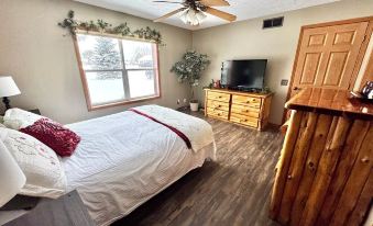 Whether relaxing on the back porch, or sitting around the fireplace in the living space, this spacious home is the perfect place to unwind after enjoying all that Charlevoix, and the surrounding area, has to offer.