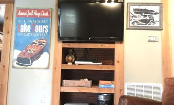 This is a 2 bedroom, 1 bath cabin on the lake WATERFRONT. Located on the main channel. It is close to the bat cave, the fireworks, and Guntersville Dam. This property is back in the woods. A real 'Uncle Buck' Summer camp feel. Trees everywhere! Awesome ride back. Serine. 50' off the pier it is 10' deep water. The inside of the cabin is remodeled to a rustic tone with a lot of cedar! King bedroom has a new (June 2024) 50 inch TV. 42' plasma for TV in the living area. Brand new refrigerator (April 2021) Satellite Internet. Cell phone service varies from carrier to carrier. Cove is smooth for skiing or inter-tubing. Area is great for fishing. Great for Canoeing. Canoes, kayaks, are 'RENT FREE'. New Washer and Dryer onsite (June 2025). Big deck on the back. Charcoal grill. Hardwoods and tile. No carpet. Great neighbors. Plenty of parking. A fire pit perfect for s’mores! Recently added boathouse to cover your expensive bass rig! Power at the pier to charge. Over 200 5 star reviews! More than anyone on vrbo!About pets:Pets allowed.$50 Pet Fee.About checkOut:Check out before 11:00 AM.About children:Children allowed: ages 0-17.About checkIn:Check in after 3:00 PM.About smoking:Smoking is not permitted.About minBookingAge:Minimum age to rent: 25.About events:No events allowed.