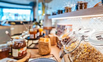 يقدم الإفطار للضيوف خيارات طعام من بوفيه أو كونتيننتال أو نباتية.