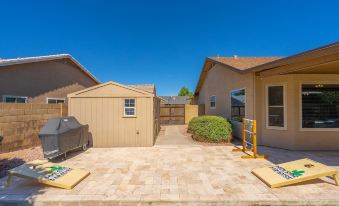 But wait! The best is yet to come! Step out onto a fully enclosed backyard, where you can enjoy the great Arizona weather in the heated swimming pool, prepare delicious meals with the Weber BBQ, and have hours of family fun in this relaxing space.  Ideal for outdoor activities.